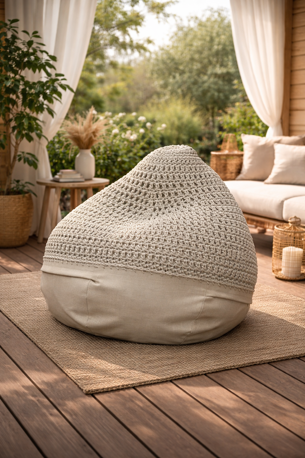 Outdoor lazy bag klasik oblika i veoma atraktivnog izgleda, izdržljiva za sve outdoor uslove, ručno pletena